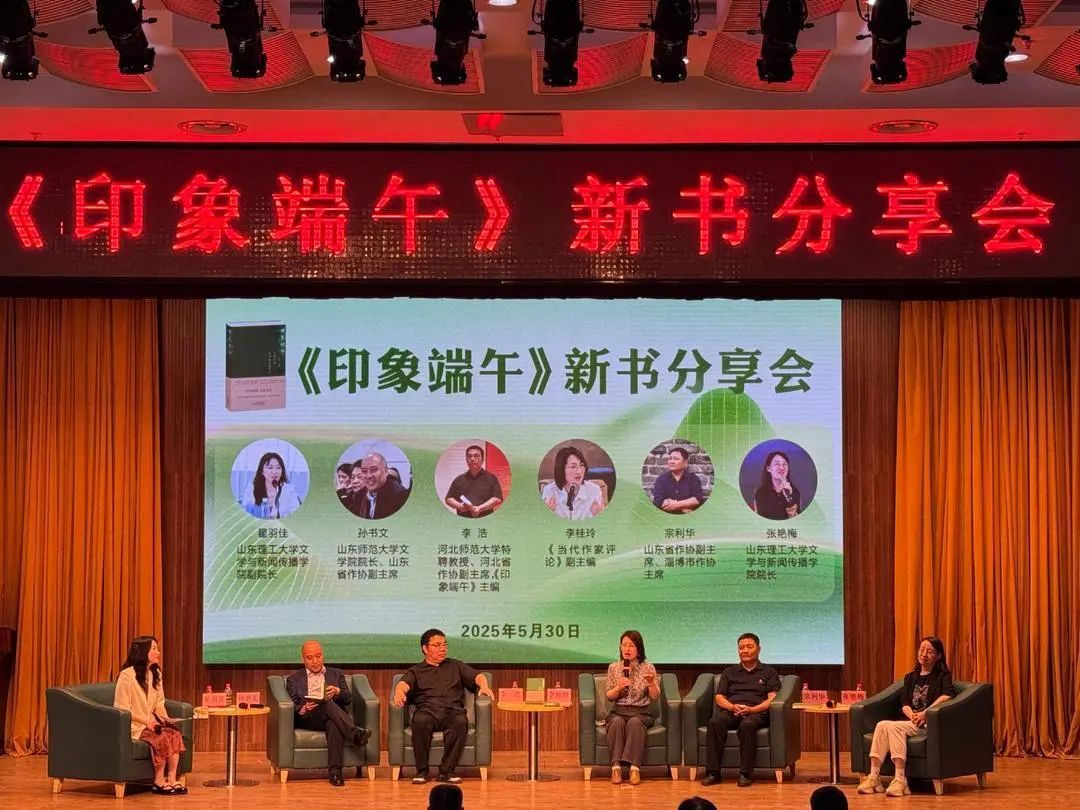 “《印象端午》主编李浩不仅是策划者,更是一位深耕文学与传统的书写者。端午不仅是粽子与艾草的物理存在,更是民族情感的精神凝结。”本次分享会主持人山东理工大学文学与新闻传播学院副院长、教授翟羽佳介绍了前来的嘉宾,他们分别是《当代作家评论》副主编李桂玲,山东师范大学文学院院长、山东省作协副主席孙书文,山东省作协副主席、淄博市作协主席宗利华,山东理工大学文学与新闻传播学院院长张艳梅等嘉宾,以及来自淄博的广大读者。